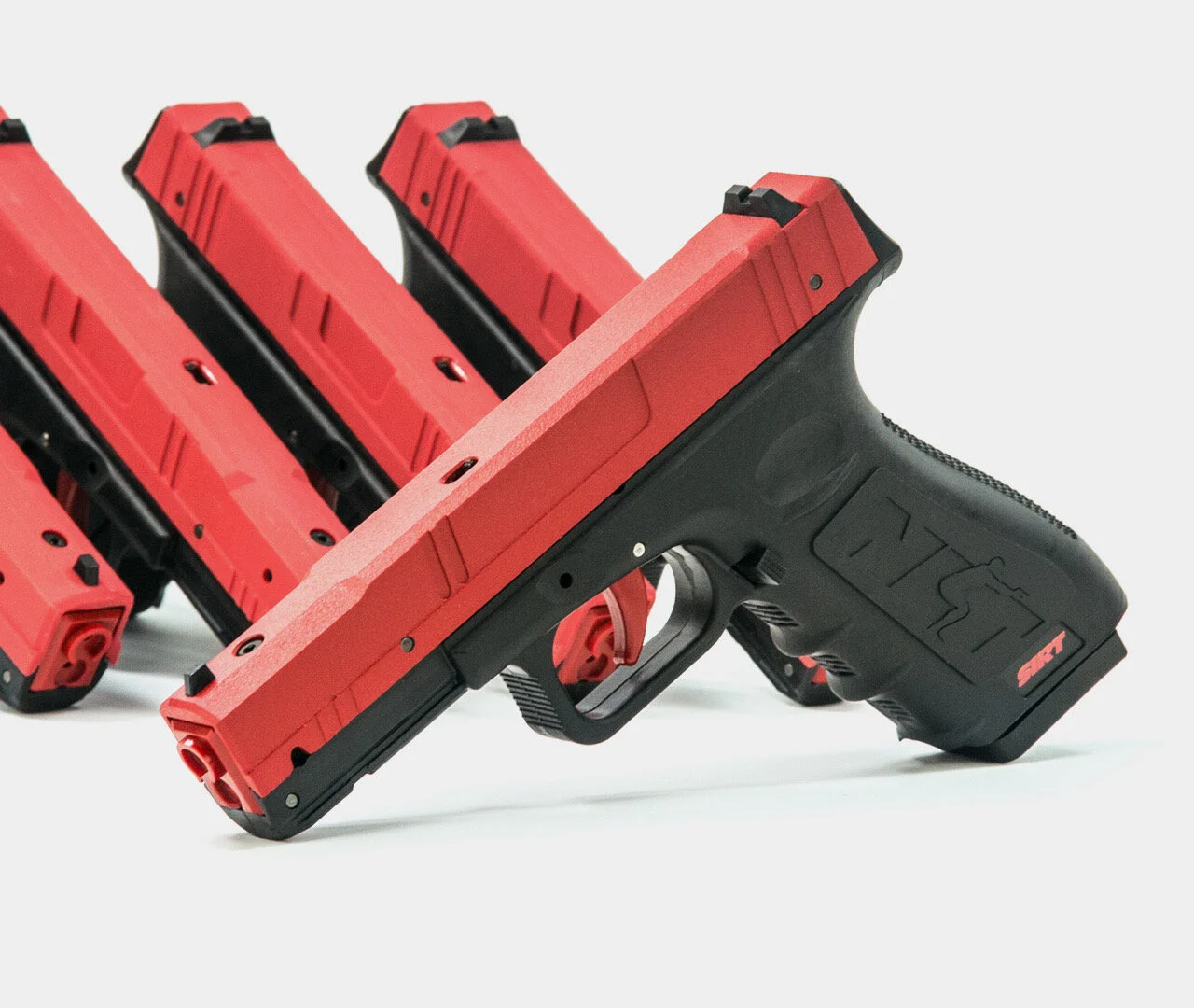 The SIRT pistol from Next Level Training is an integral part of a dry-fire training system. SIRT pistols feature a resetting trigger (the trigger can be pulled repeatedly without racking the slide) SIRT pistols also indicate shots with a laser impulse for immediate feedback. SIRT training pistols have no recoil and no muzzle blast, which allows students to focus on the fundamentals without distraction.